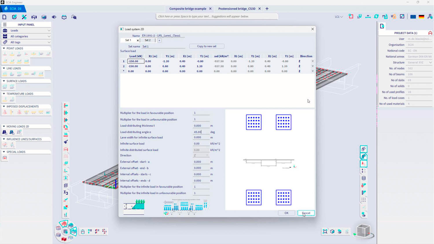 For moving load systems, such as traffic on bridges, cranes in industrial facilities, or crowds walking across slabs, Scia promises significant time savings for simulation by making it “easy and straightforward” to handle the large number of load combinations. The software automatically identifies the worst-case load positions before running calculations, eliminating the need to process negligible or non-critical load cases.