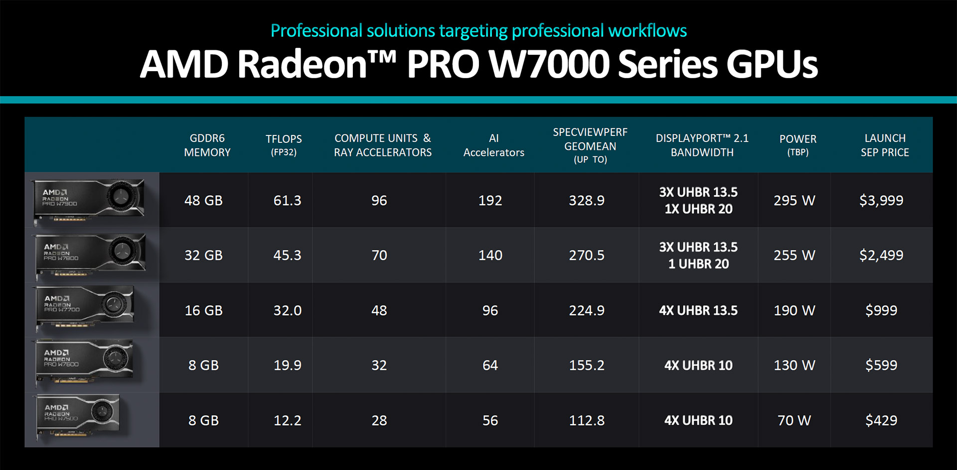 This feels like a very important addition to AMD’s Radeon Pro 7000 Series of professional workstation GPUs. With 16 GB of GDDR6 memory, it plugs a gap that existed between the 8 GB Radeon Pro W7600 and 32 GB Radeon Pro W7800.