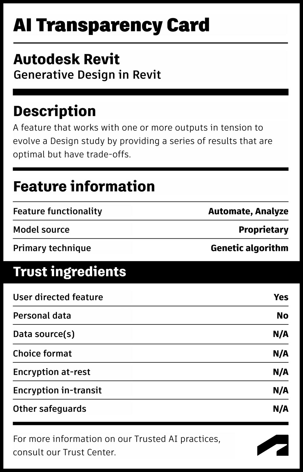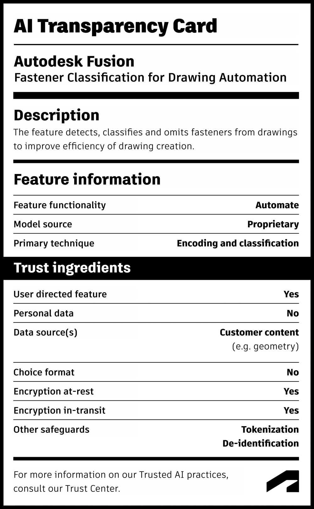 To help bring more transparency to how Autodesk is using customer data for training its AI models, Autodesk has created a series of Autodesk AI transparency cards which will be made available for each new AI feature. “These labels will provide you a clear overview of how each AI feature is built, the data that is being used, and the benefits that the feature offers,” said Arasu.
