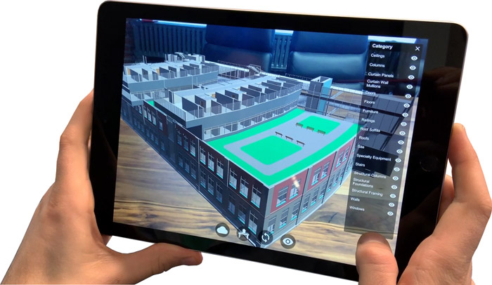 SHoP first used the app in an office environment with a simple model of the building, visualised in AR using an iPad, but it is now looking to take it out on site as well to better connect design and construction. It’s using object recognition to overlay BIM models on top of the construction site for QA and for giving site workers quick access to information, although there are still many challenges surrounding the accuracy of the overlay.