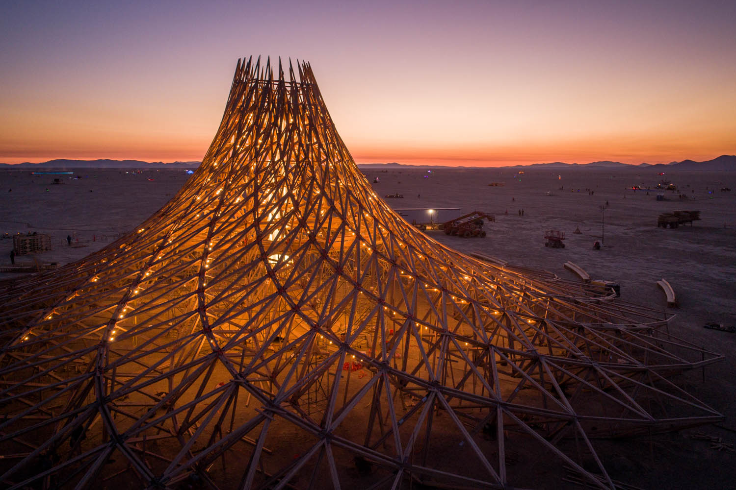 When the London-based architect and his team set out to finalize the project for construction, they took into account standard concerns such as safety, buildability, and cost. But the structure’s intended use added a novel twist: as the main temple at the annual Burning Man festival, Galaxia would be set aflame only seven days after it was erected.